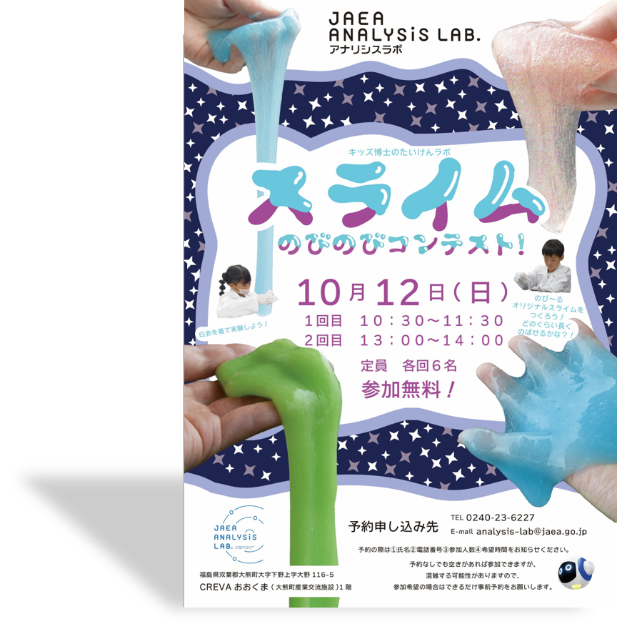 今回の分析は、スライムがよくのび~るための材料の配分や、ふわふわにするための混ぜ方、きれいな色を付けるための工夫! |