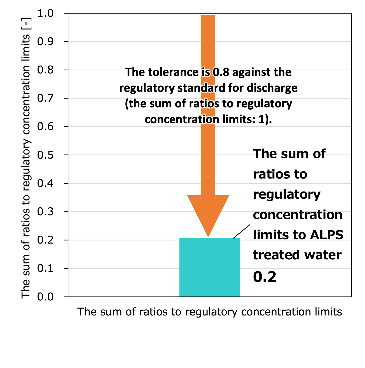 As a result of the analysis of ALPS treated water before seawater dillution, the sum of ratios of legally required activity concentrations of radionuclides other than tritium (29 nuclides [Ref.]) was confirmed to be satisfy regulatory limit (less than 1).
