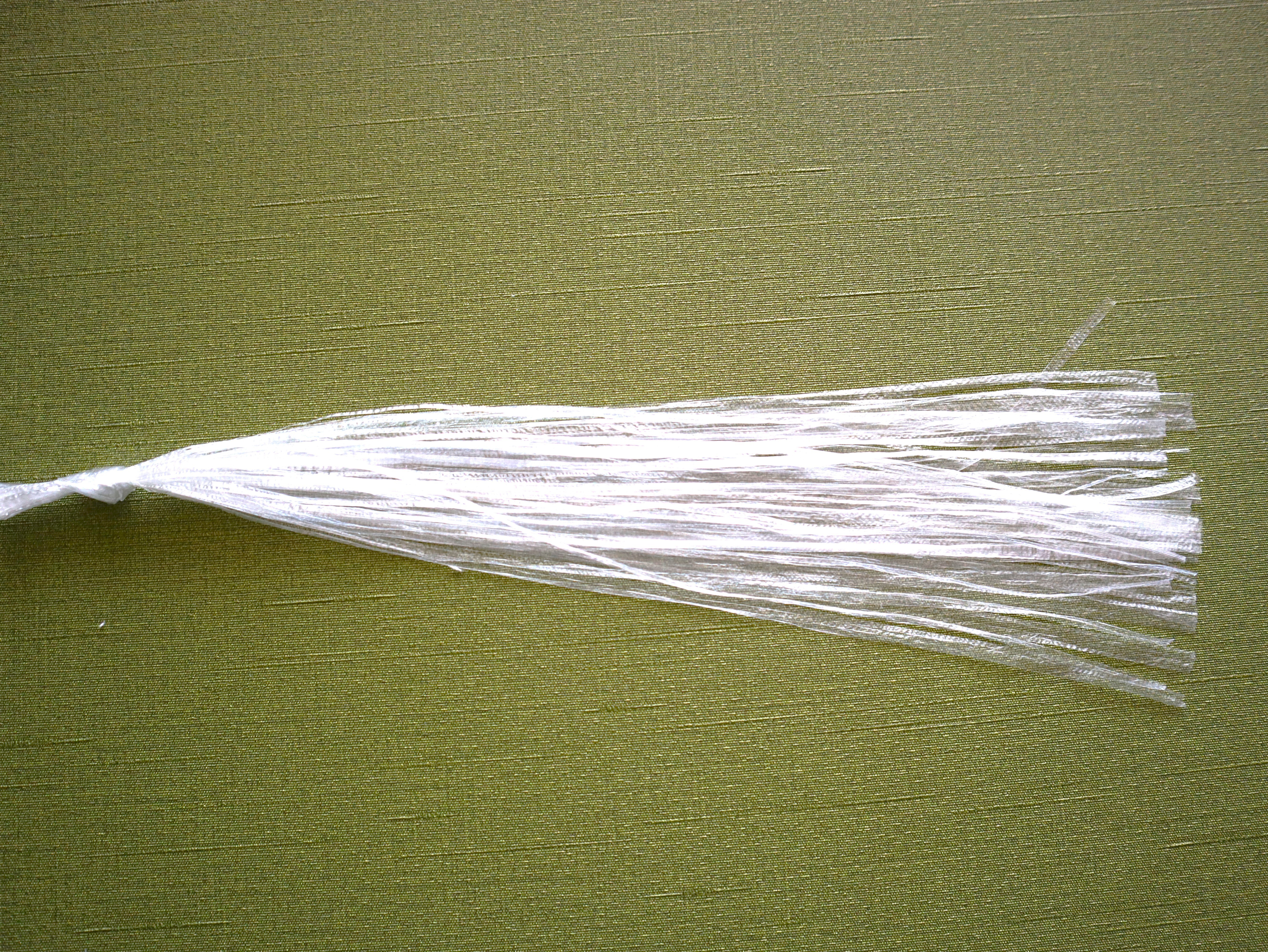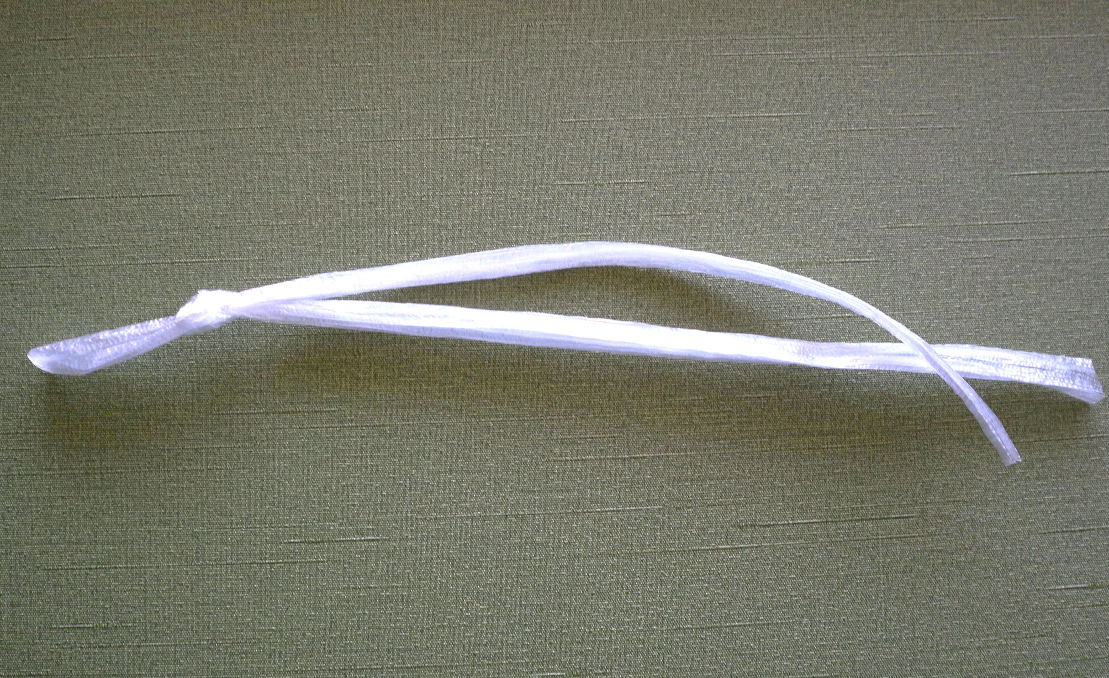 ②ひもの足の部分を広げて、ていねいに2~3㎜くらいの細さにさく。