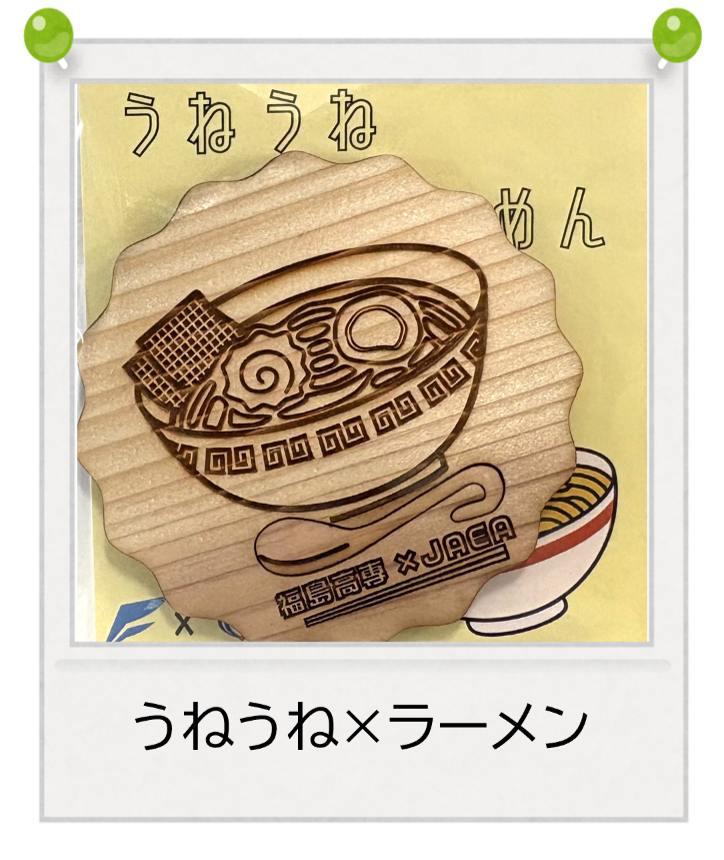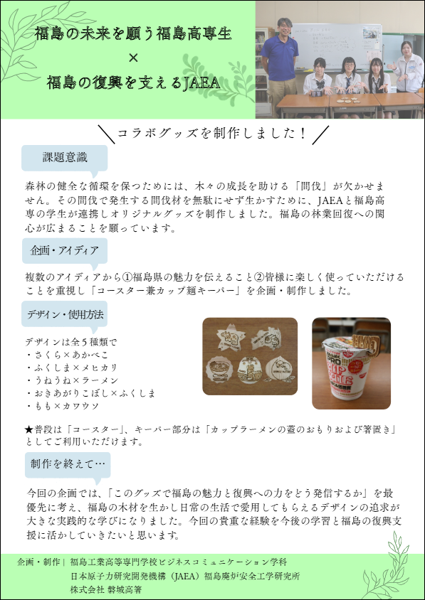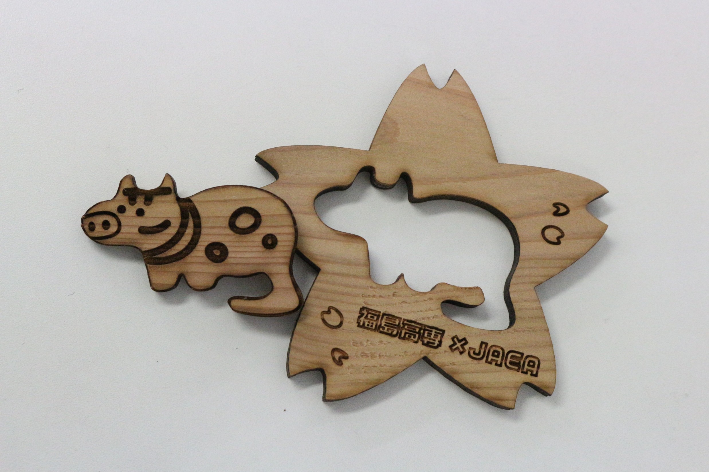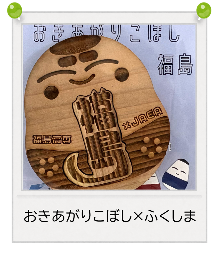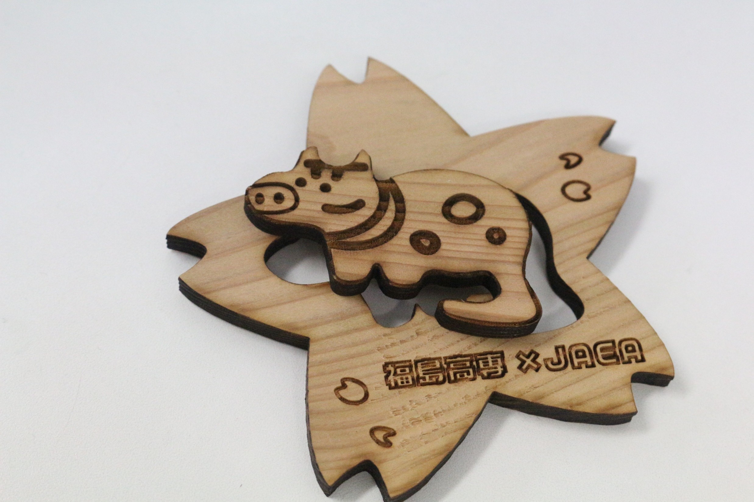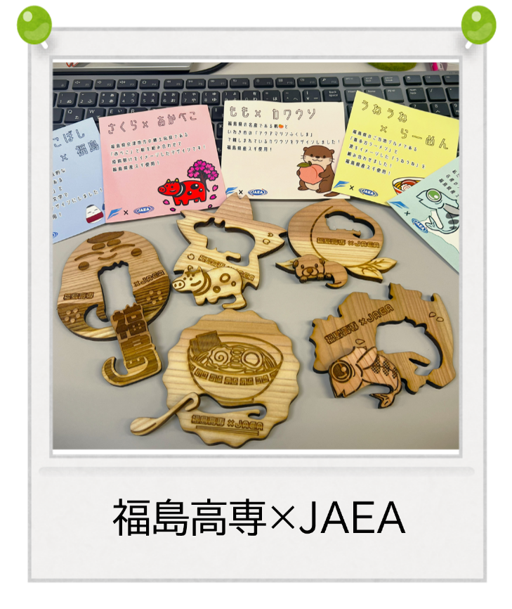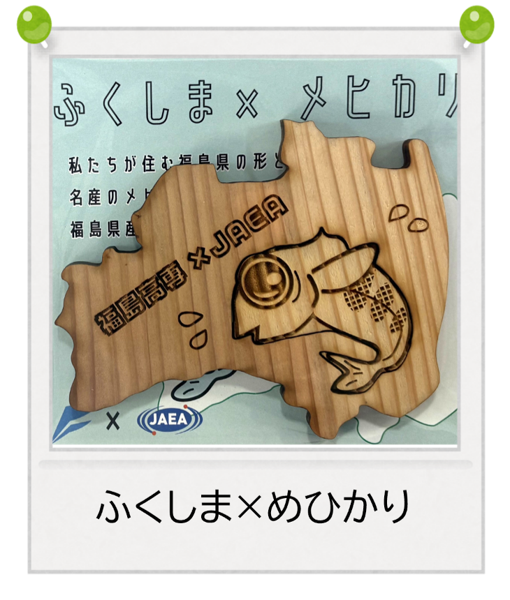 完成に至るまで ①福島県の魅力をつたえること 高専生が福島県をイメージしてデザインし、JAEAが製品化データの整理をしました。 高専生がデザインに込めた想いは、台紙にも記載してあります。 私たちは福島県の林業回復を応援しています これからも引き続き活動を行ってまいります。