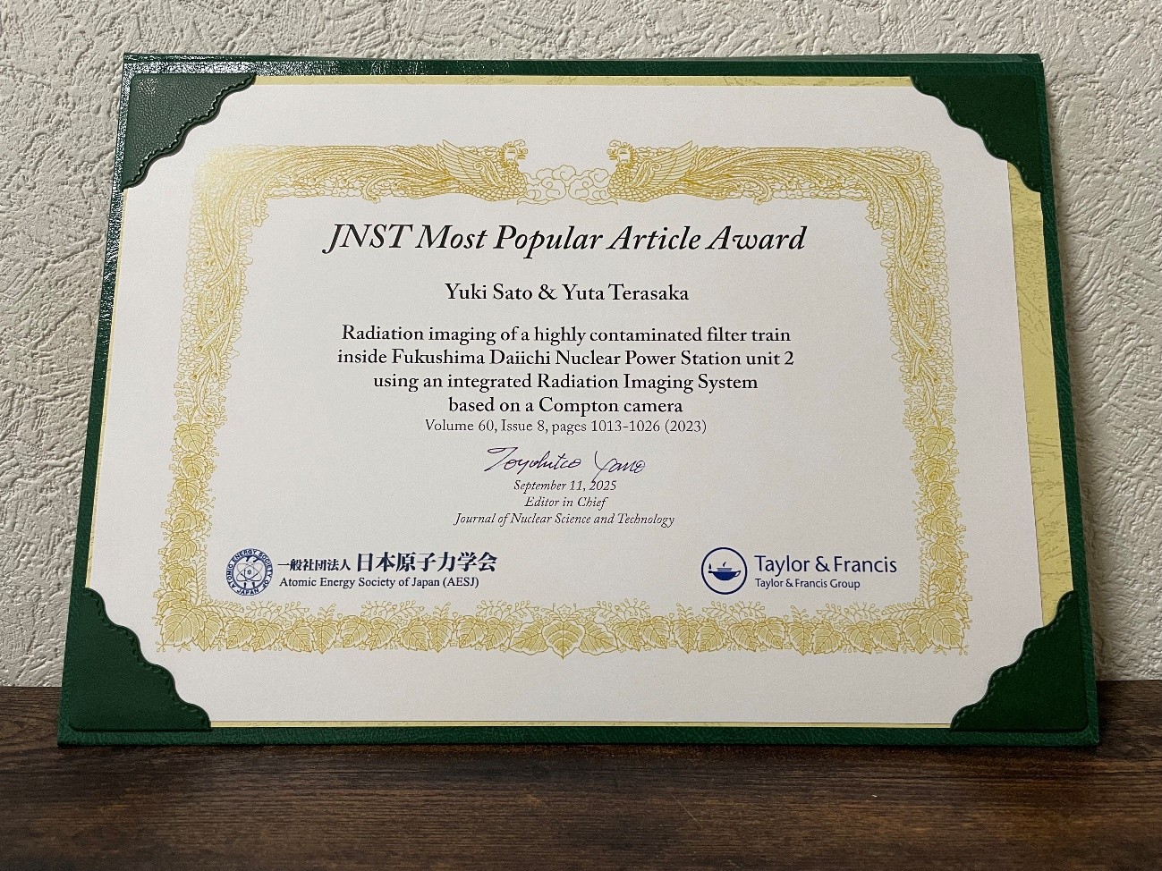 「日本原子力学会及びTaylor & Francis社<JNST Most Popular Article Award>」を受賞